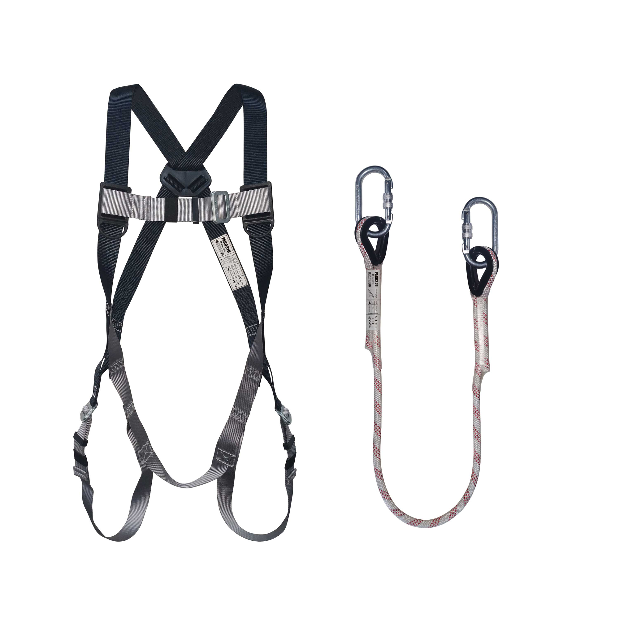 Kit includes a 2-point harness which is adjustable in three places and a 1.2m fixed length restraint lanyard with 2 karabiners.